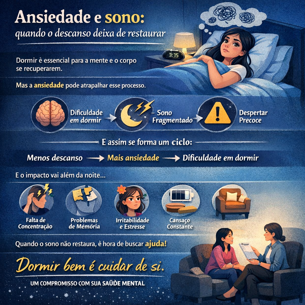 Na prática clínica, é comum observar que pessoas ansiosas não apenas dormem menos — elas descansam pior.